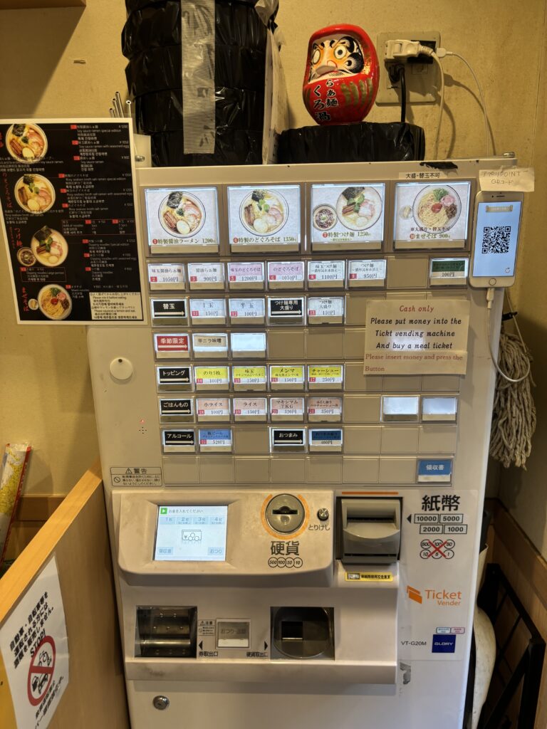 注文は、券売機形式になっており入ってすぐ右手側にあります。