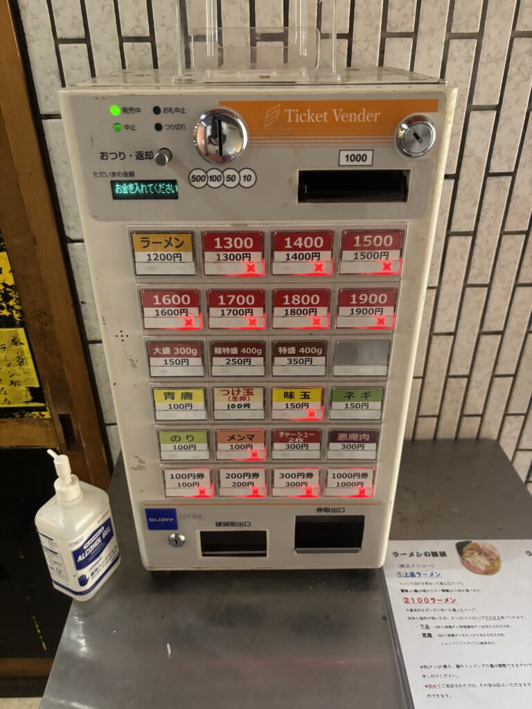 注文は、現金のみの券売機形式になっております。