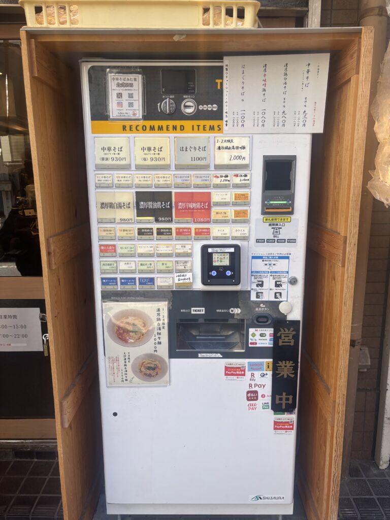 注文方法は、入口付近にある 券売機で食券を購入してから席に着く一般的なスタイルです。