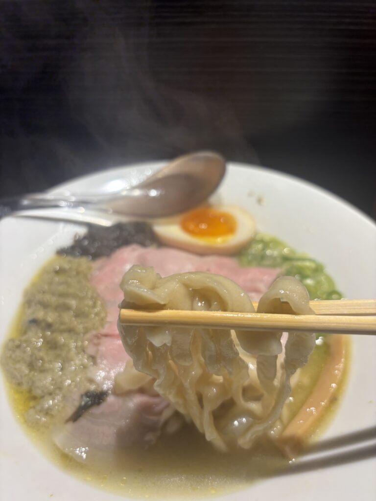 最後にスープは、鶏ガラを長時間じっくりと煮込まれた鶏白湯スープをベースに海鮮出汁をプラスしてしっかり効いた「牡蠣塩」というスープの仕上がりになっていました。