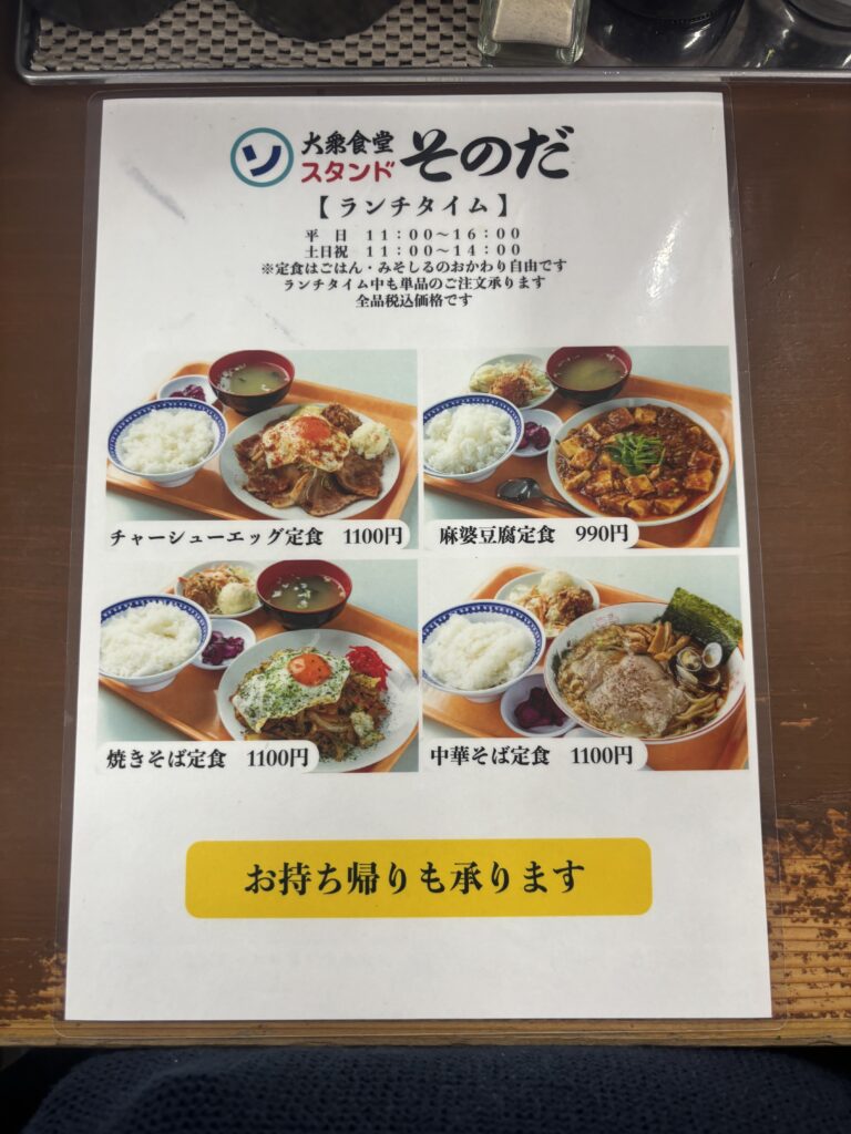 今回行ってきたところは「大衆食堂スタンド そのだ 五反田店」は、五反田駅から徒歩数分の場所にある人気の“ネオ大衆食堂”です。昭和レトロな雰囲気の中に現代的なエッセンスが加わり、昼は定食、夜は居酒屋として多くの人で賑わいます。店内はコの字型カウンターを中心に活気があり、どこか懐かしさを感じる空間です。