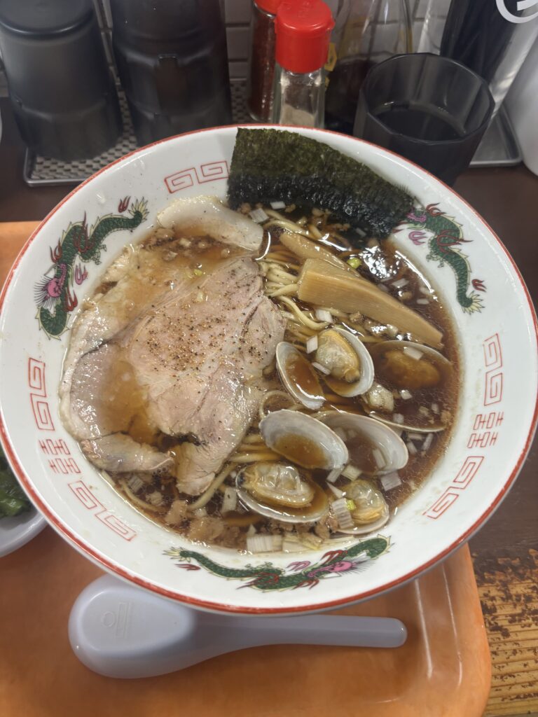 中華そばは、見た目こそシンプルながら、スープを一口すすればしっかりとした旨味が広がります。醤油の香ばしさの中に、貝出汁のような優しいコクが感じられ、最後まで飽きずに楽しめる味わいでした。麺はほどよいコシがあり、スープとの絡みもよく、一杯としての完成度が高いです。