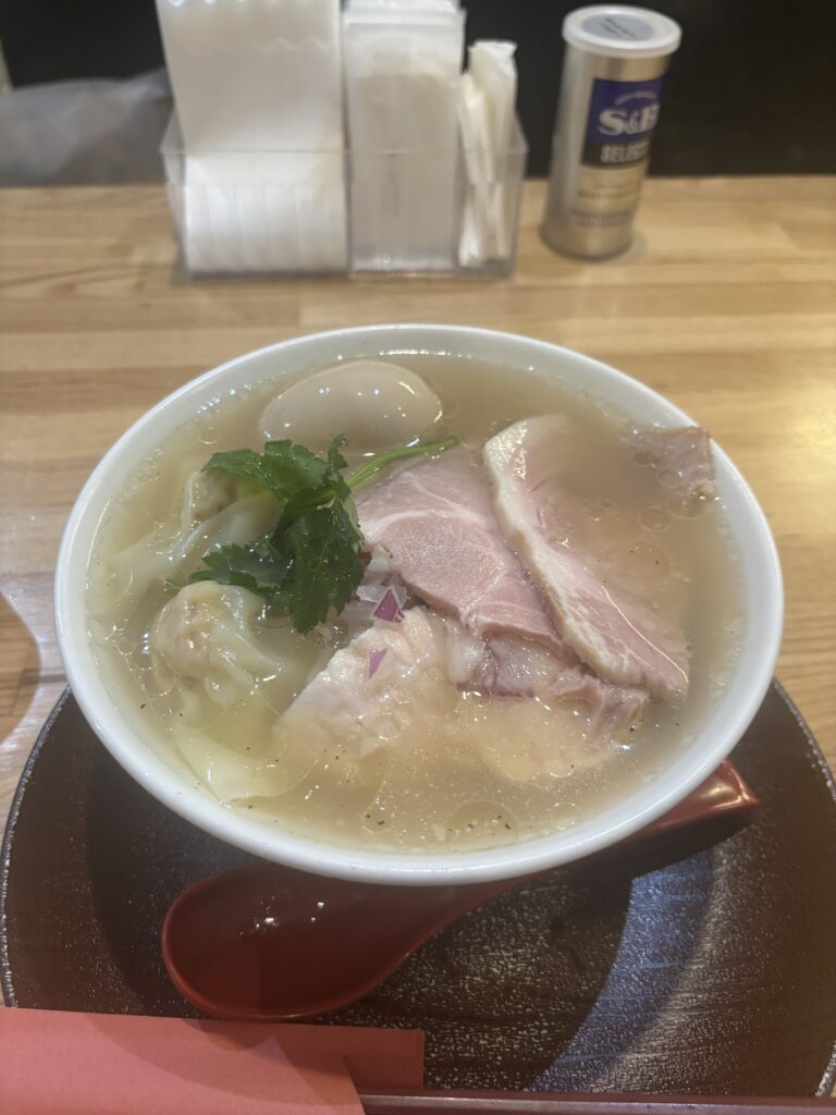 白だしのスープは、魚介や貝の旨味がじんわりと広がり、とても奥行きのある味わいでした。醤油と比べると雑味がなく、旨味がダイレクトに伝わってくるため、個人的にはこちらの白だしの方が好みです。とはいえ、醤油もしっかりと力を持った一杯だと聞いているので、次回はぜひ醤油を試してみたいと思います。