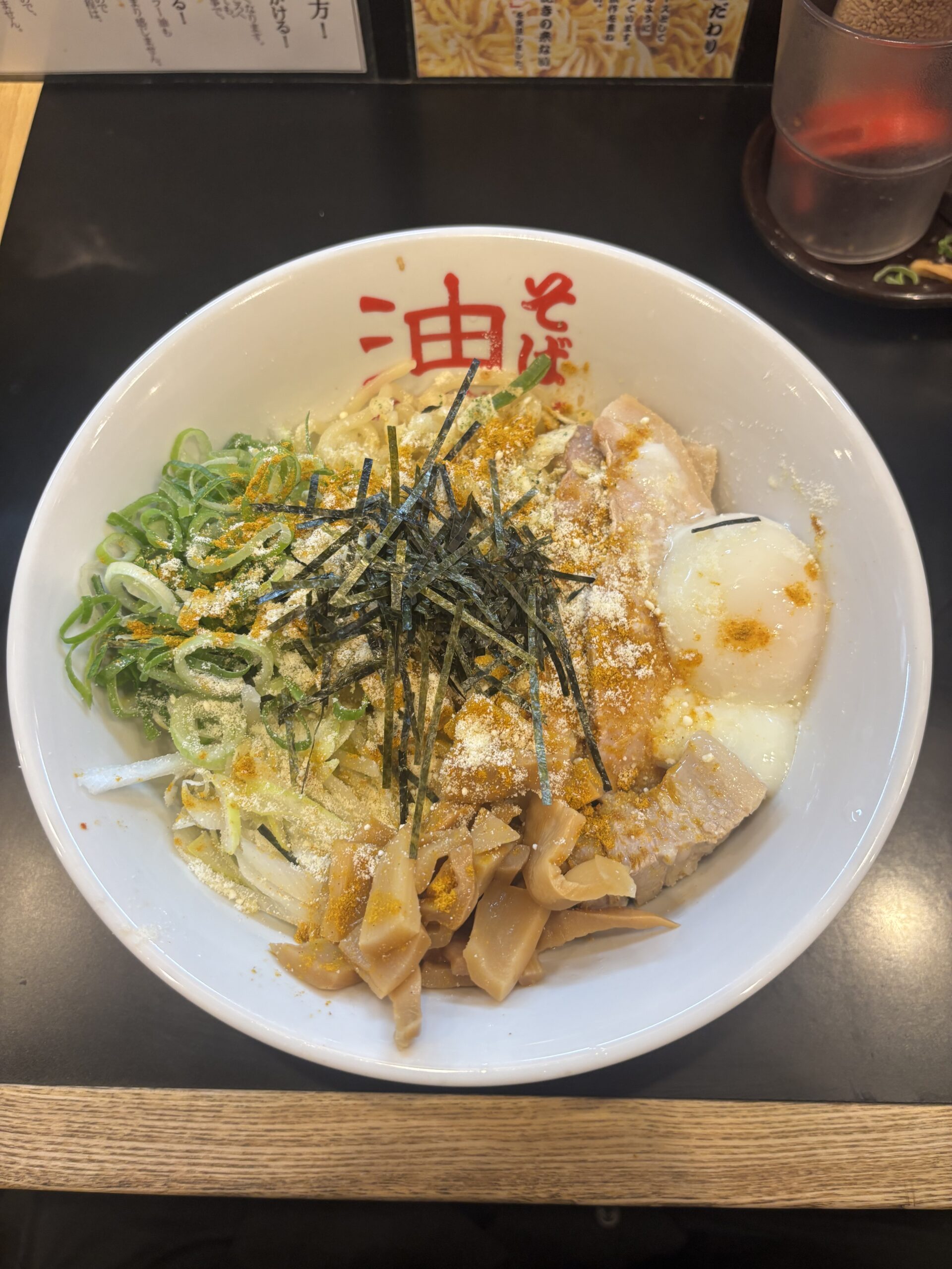 人気メニューは定番の油そばをはじめ、チャーシュー油そばや、具材が充実した奈々SP油そばなどがあります。