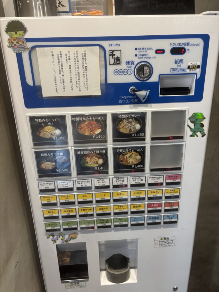 メニューには、「特製みそこってりらーめん」を筆頭に、旨辛みそらーめん、味噌カレーらーめん、味噌つけ麺、味噌担々麺、芳醇白みそらーめんなど、味噌をベースにしたバリエーションが豊富でした。今回は、一番人気の「特製みそこってりらーめん(1350円)」を購入しました。