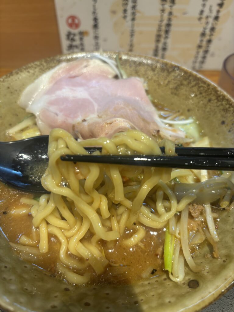 麺は 中太の特製麺 で、味噌スープに負けない食べ応えがあります。