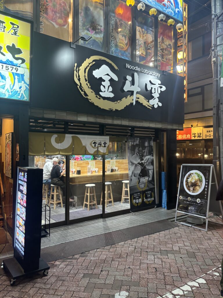 本日行ってきたラーメン店である「金斗雲 北千住店」は、鹿児島発の人気ラーメンブランド「Noodle Laboratory 金斗雲」が2025年10月に北千住にオープンした店舗です。北千住駅西口から徒歩5分ほど、商店街の一角に位置しており、アクセスの良さと活気ある雰囲気が印象的です。