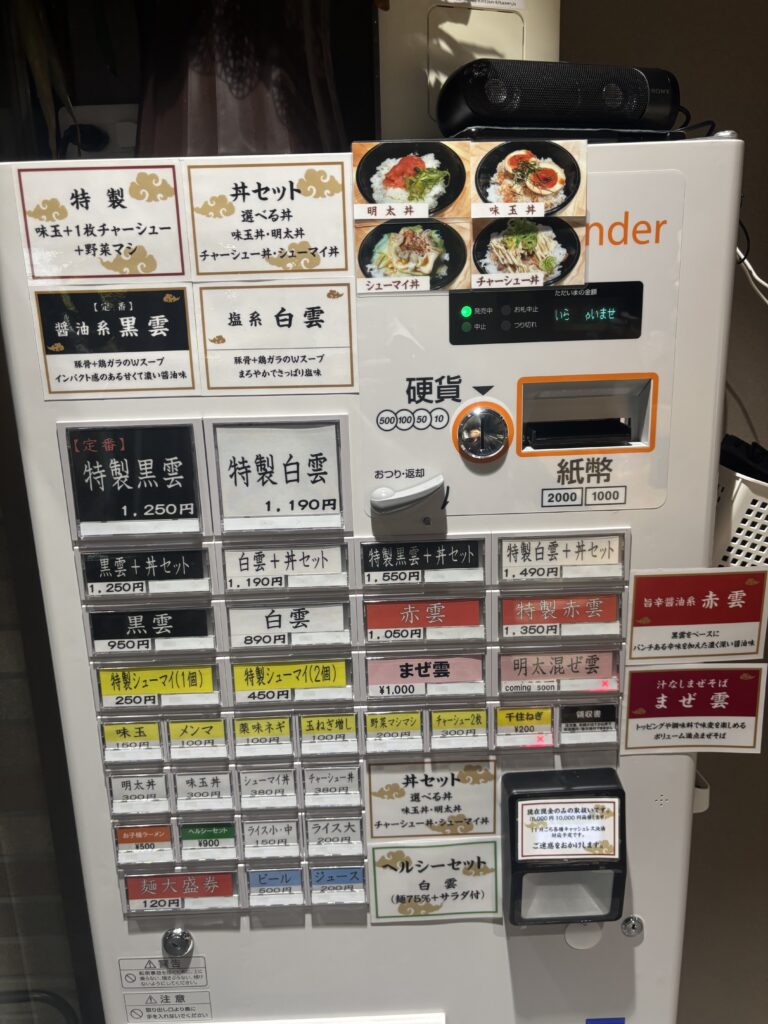 メニューは、定番の「醤油の黒雲」塩系の「白雲」辛みの「赤雲」となっており塩味・辛味系のバリエーションも用意されており、その日の気分に合わせて味を選べるのも魅力のひとつです。