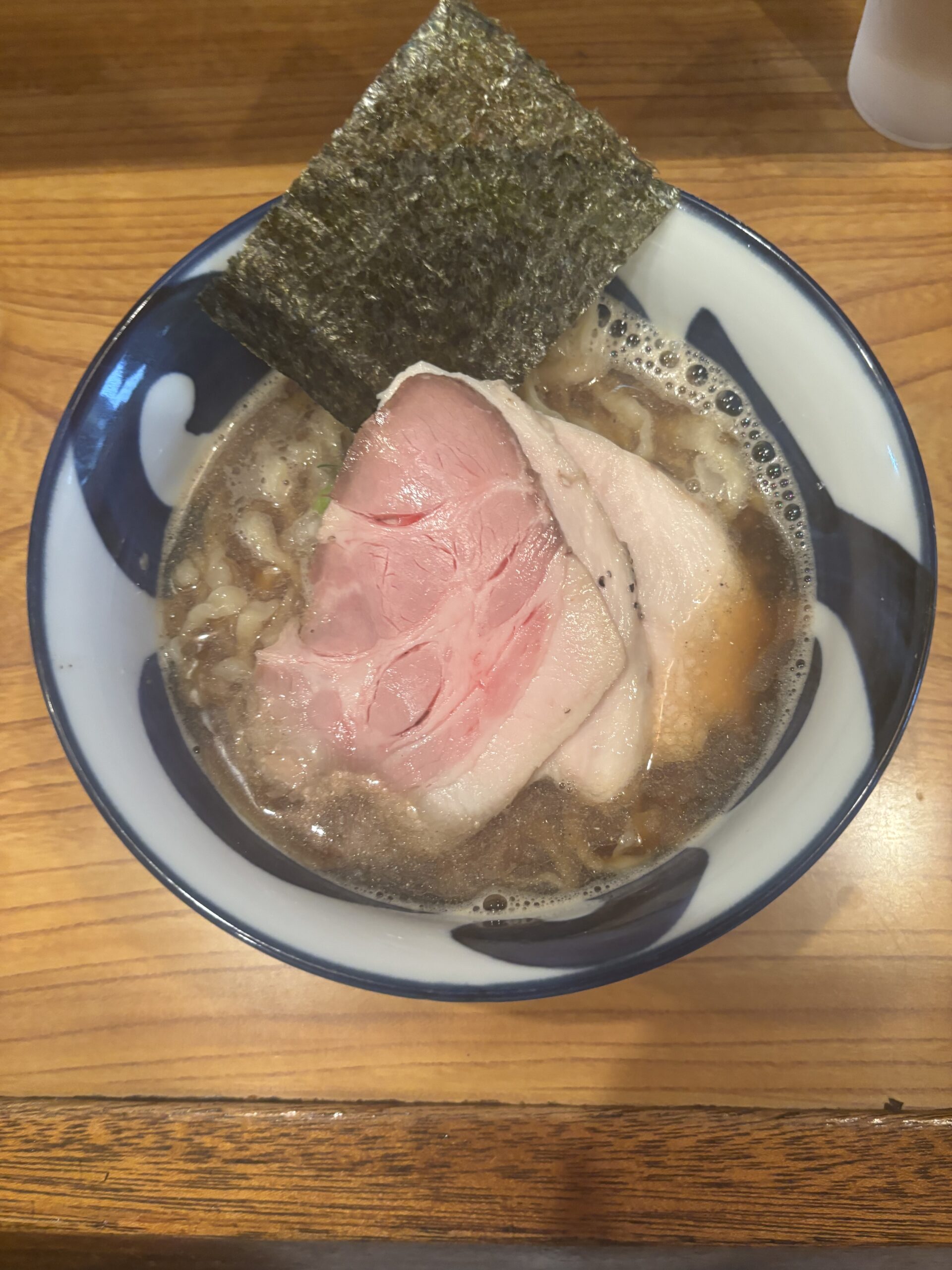 今回は「淡麗にぼしそば」をいただきました。煮干しラーメン好きにはたまらない、まさに煮干しの魅力を存分に味わえる一杯です。スープを口に含むと、煮干しの香りと旨味がふわっと広がり、最後の一口までその深みを楽しむことができました。塩味の加減も絶妙で、しっかりとした風味ながらも後味はすっきりとしています。麺との相性も良く、煮干しスープをしっかりと絡めながら食べ進められるのも印象的でした。