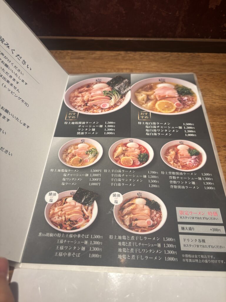 地鶏を使った醤油ラーメンや鶏白湯ラーメン、長野のご当地ラーメンを再現した個性派の一杯である王様中華そばなどがありました。