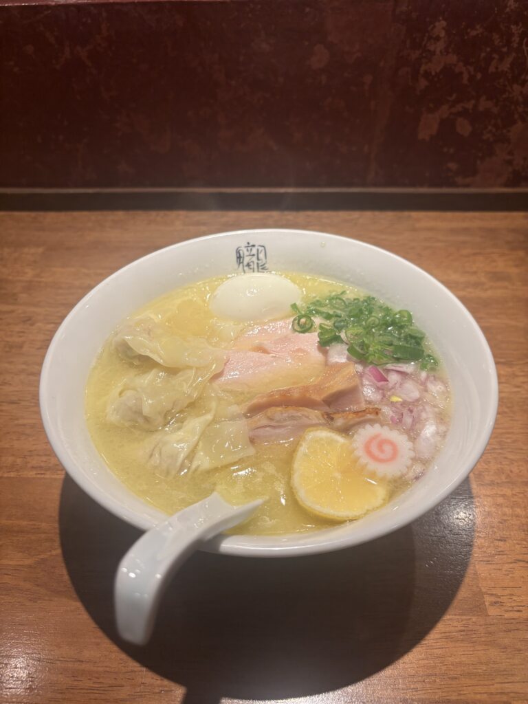トッピングは「2種の鶏チャーシュー(ムネ肉とモモ肉)雲吞、塩玉子、赤玉ねぎ、青ネギ、ナルト、レモン」となっておりました。鶏チャーシューの火入れはとても良く最後までジューシーさを感じることが出来るチャーシューでした。