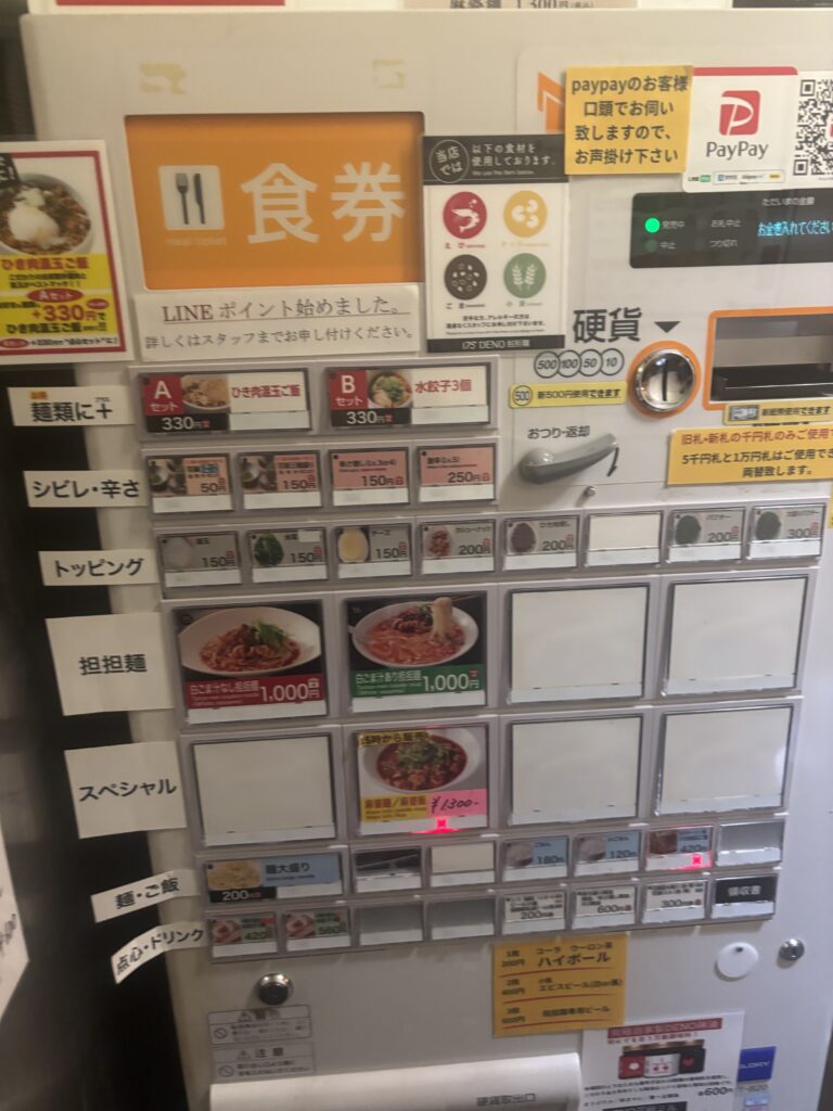 看板メニューは、花椒のしびれと香りが特徴の担々麺。汁なし・汁ありの両方が用意されており、今回は汁なし担々麵である「白ごま汁なし担々麵(1000円)」にしました。
