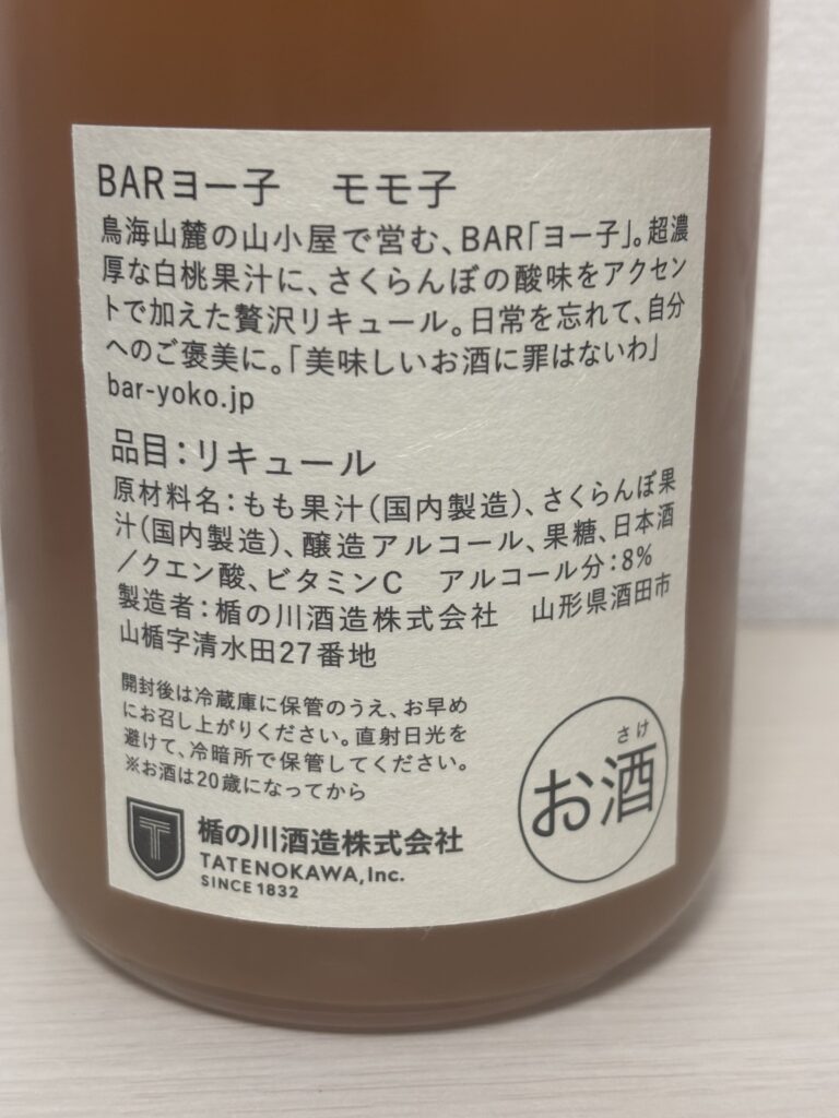 今回紹介する、日本酒を使用しているフルーツ系のリキュールである「BAR ヨー子 モモ子」は、白桃のとろりと濃厚な甘さをベースに、さくらんぼ果汁のほどよい酸味と香りがアクセントがきわだったフルーツリキュールになります。