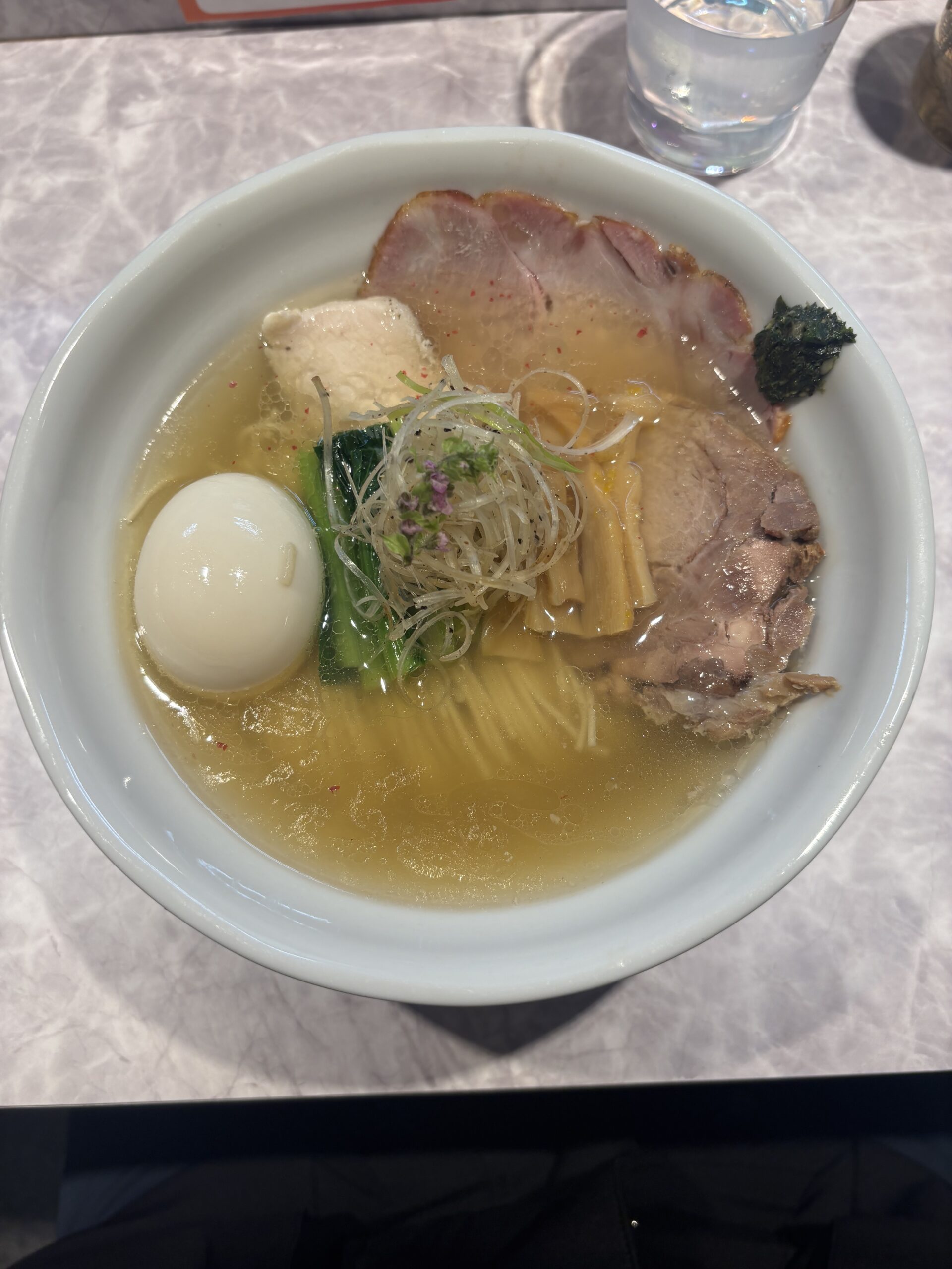 今回は「Ramen Shizuku」で、3種のチャーシューと味玉の塩らーめんをいただきました。